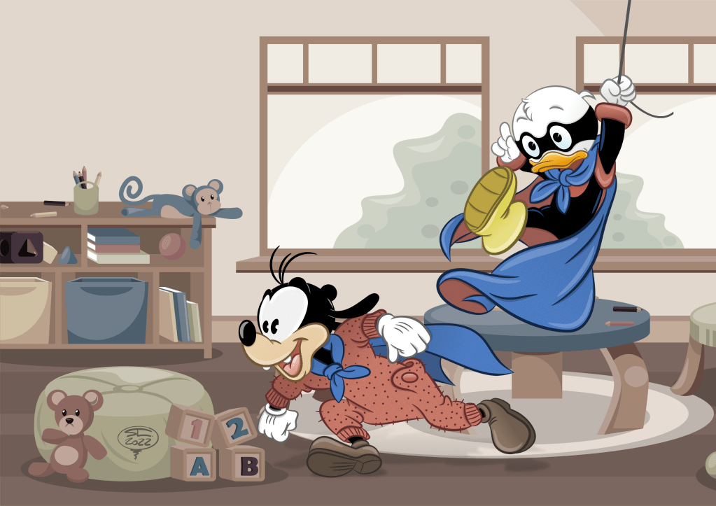 (Damals spielten Goofy und Donald nur Superhelden. Es gab noch keine Supernüsse oder technischen Hilfsmittel…)