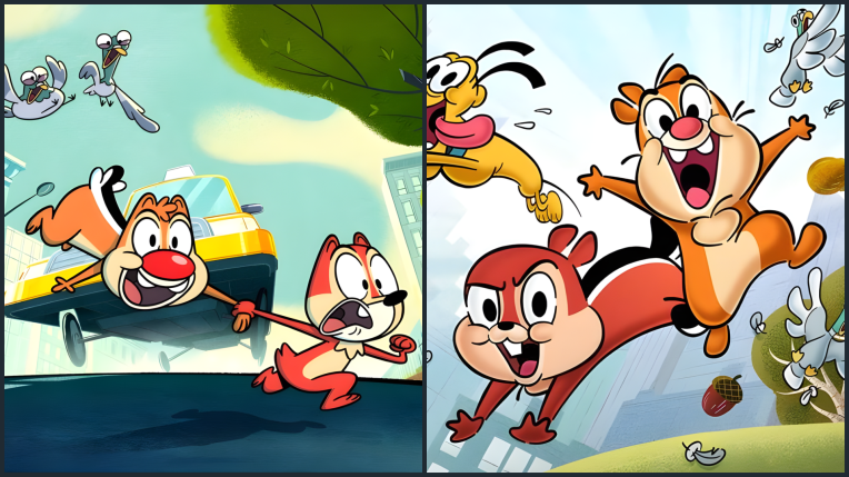 Bei „Chip und Chap: Das Leben im Park“ sah das erste Promobild noch ganz anders aus als die fertige Serie. Auch hier erhalten die Streifenhörnchen eine neue Interpretation – neu ist das Prinzip allerdings nicht. Schon „Chip und Chap – Die Ritter des Rechts“ versetzte die Figuren, in deutschen Comics als „A-Hörnchen und B-Hörnchen“ bekannt, in ein anderes Setting: In passender Kleidung lösen sie Kriminalfälle. Für „Chip und Chap: Das Leben im Park“ erzählte man die beiden wieder „tierischer“ – mit Abenteuern in natürlicher Umgebung und einer dynamischeren, stärker visuell getriebenen Erzählweise für ein junges Publikum. Dabei greift die Neuauflage sogar einen Aspekt aus ihrem allerersten Cartoon auf: Chip & Dale – so heißen die beiden Freunde auf Englisch – sprachen damals noch gar nicht. Entsprechend kommen die Cartoons heute oft ohne Worte aus. Wenn sich die Tiere verständigen, geschieht das in einer Fantasiesprache, die vor allem über Betonung und Gestik funktioniert. Der Erfolg gibt Disney und der französischen Produktionsfirma Xilam Recht: Eine dritte Staffel soll bereits in Produktion sein.